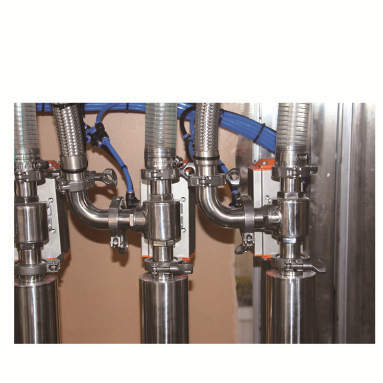 3. Može se zadovoljiti potreba za većim učinkom prihvaćanjem punjenja boce s dvije šine, punjenjem s dvije tračnice i odvijanjem ili kotrljanjem i presovanjem s dvije mlaznice. Ovaj stroj ima visoku točnost punjenja, pa ga je moguće rastavno rastaviti i sterilizirati pomoću brze spojne pumpe od nehrđajućeg čelika. Uz upotrebu stalnog odvijanja poklopca zakretnog momenta i pneumatskog zaštitnika, zaptivena usta su nepropusna.